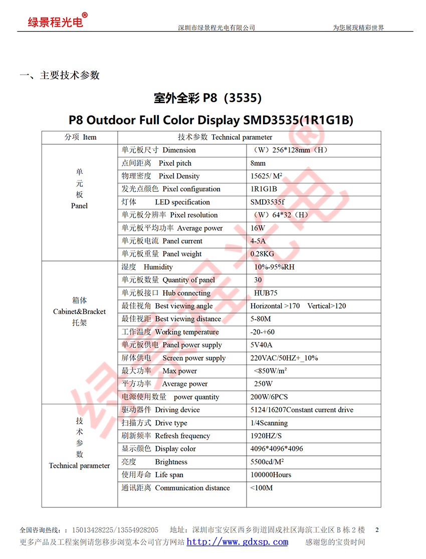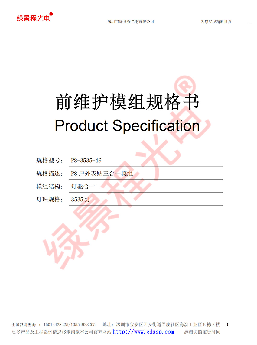 綠景程光電戶外前維護(hù)P8-SMD3535-4S-256X128mm