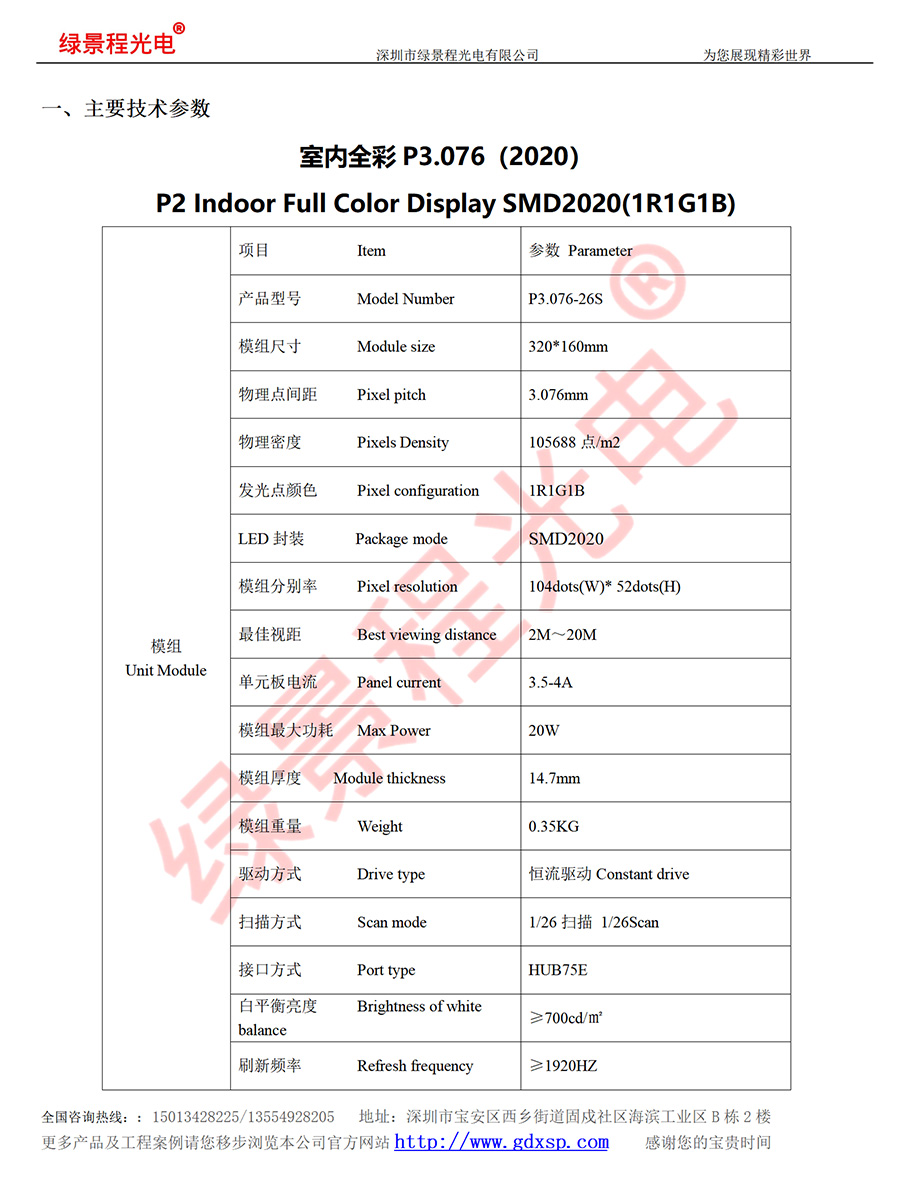 綠景程光電室內(nèi)P3.076-SMD2020-26S-320X160mm