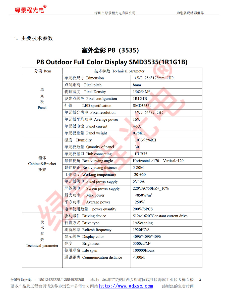 綠景程光電戶外前維護(hù)P8-SMD3535-4S-256X128mm