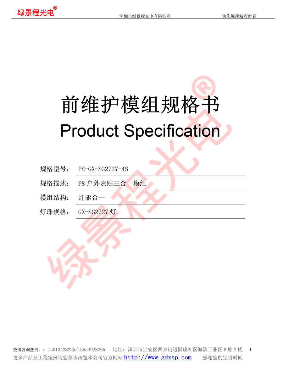 綠景程光電戶外前維護P8-SMD-GX-SG2727-4S-320X320mm